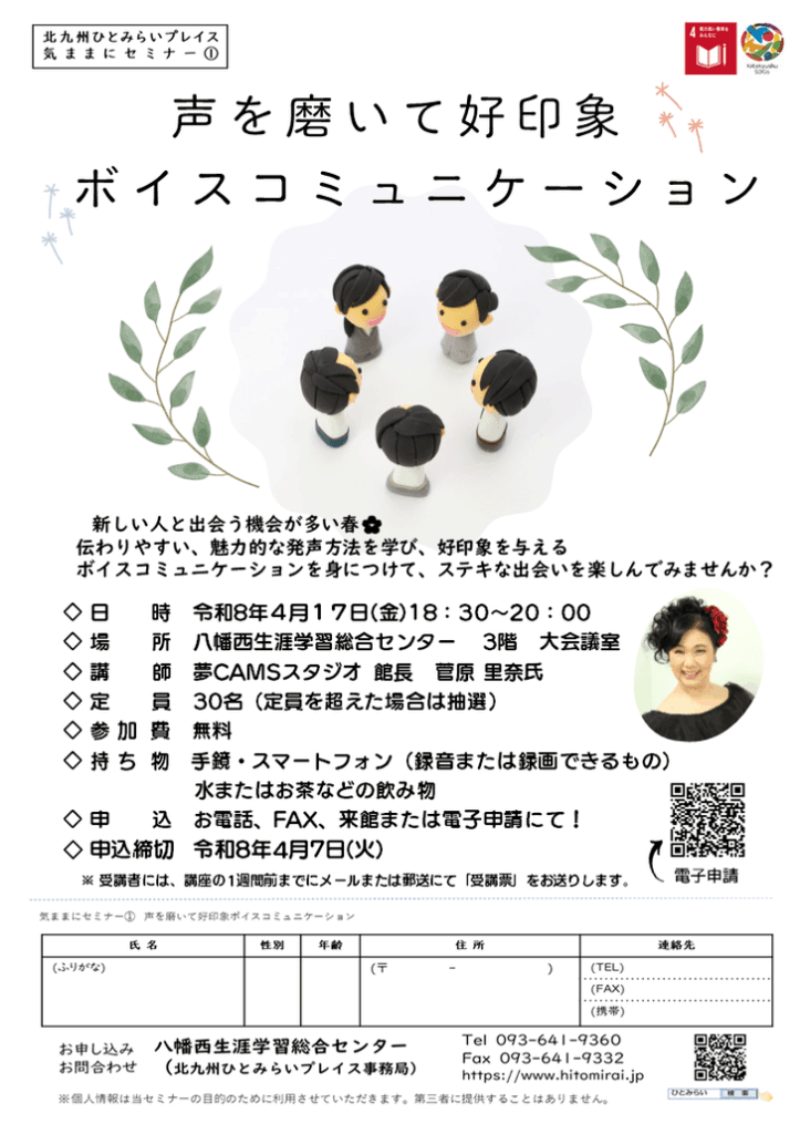 令和8年度 第一回目の気ままにセミナーは「声を磨いて好印象ボイスコミュニケーション」です。