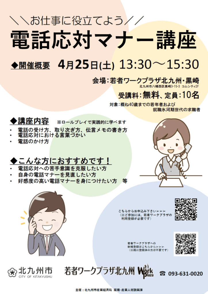 詳しくは若者ワークプラザ北九州・黒崎へお問い合わせください。